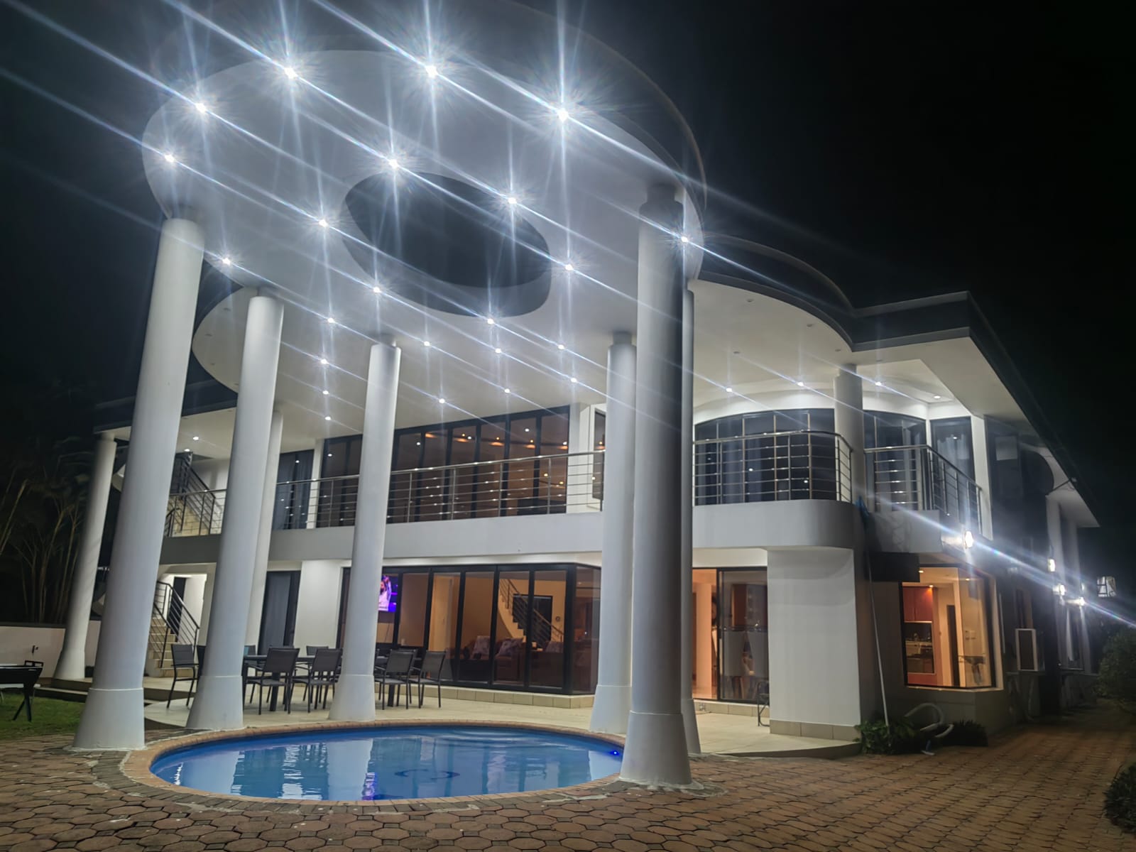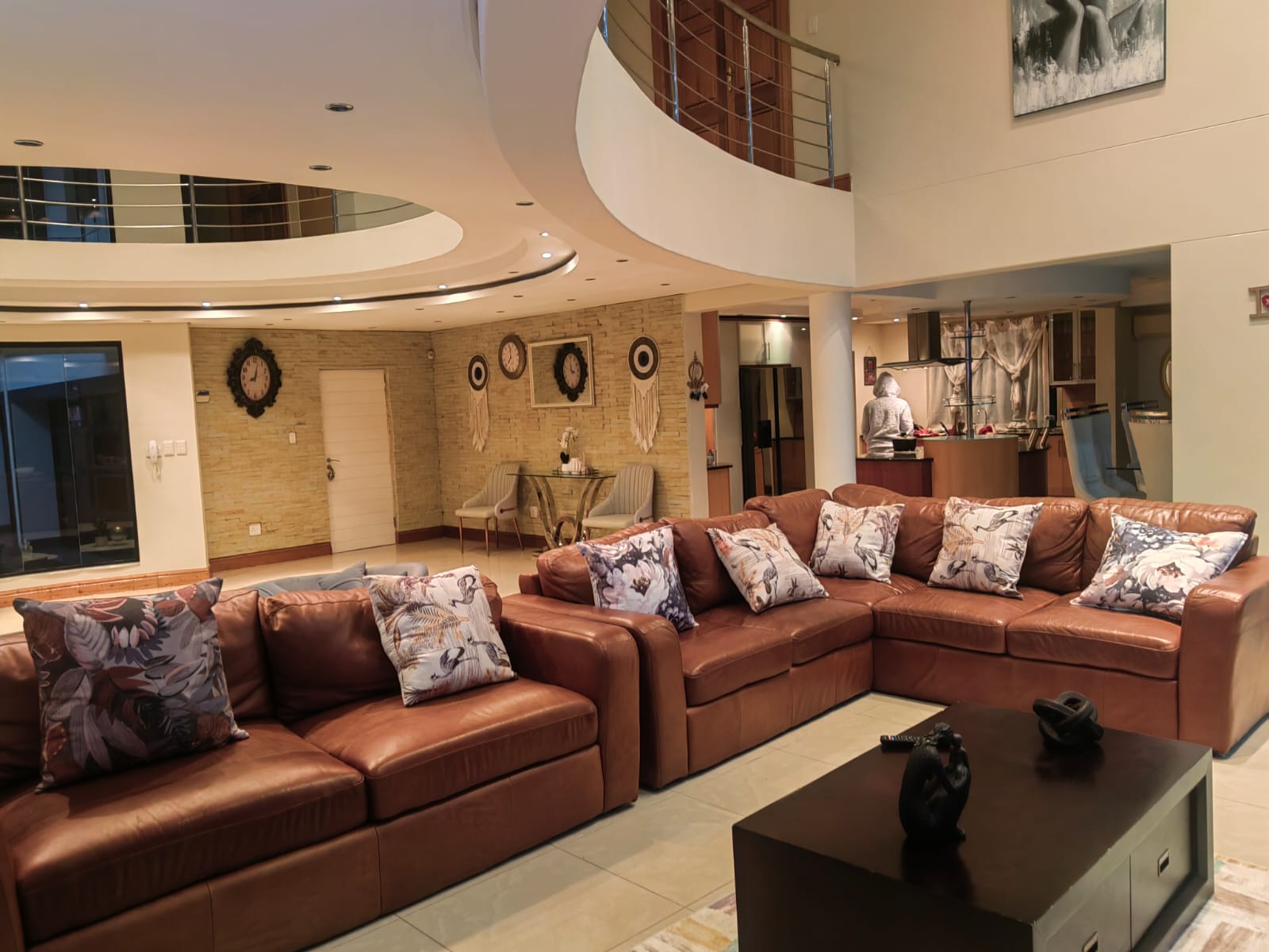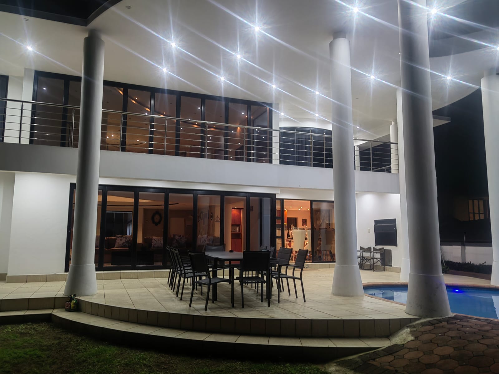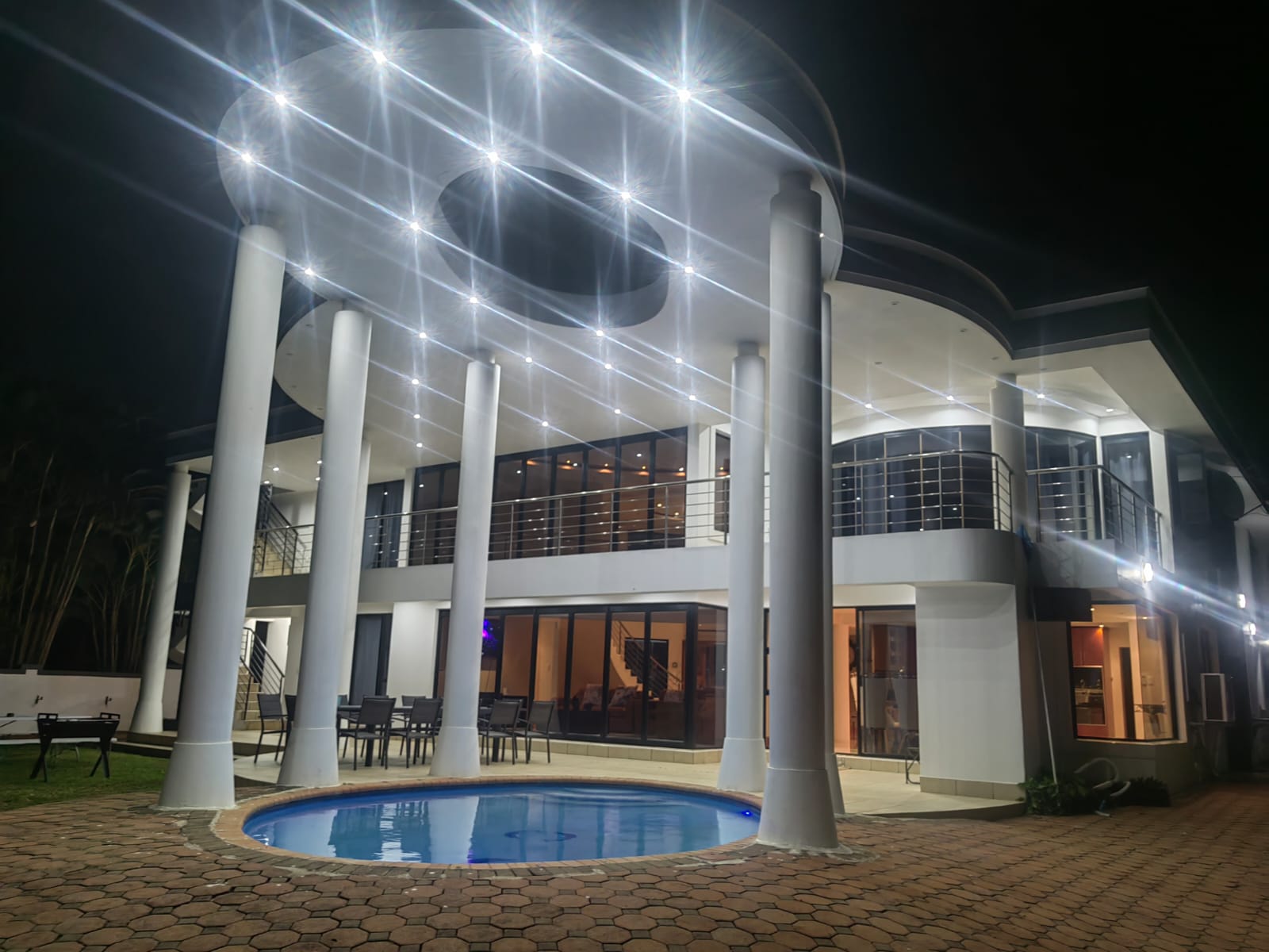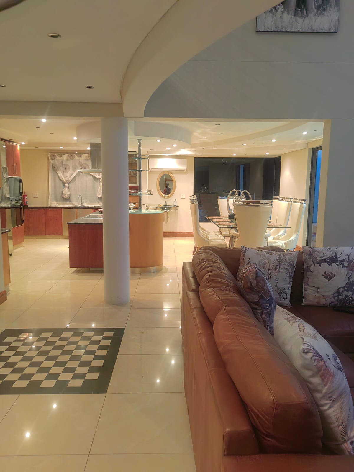 This beautiful Free standing 7 bedroom Home in Umhlanga Ridge is fully furnished with well equipped Two Modern kitchen. It’s located right in the heart of Umhlanga Ridge ( Durban) in Izinga Estate. 3 min away from Gateway mall , 5 min away from Ocean Mall and 5 min away from Umhlanga Light house or Beach.. Come enjoy like king and queen in the Palace. Beautiful ocean view. Enjoy your stay like a home away from home at the Palace in Izinga Estate