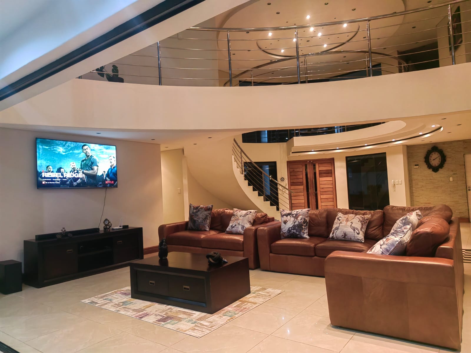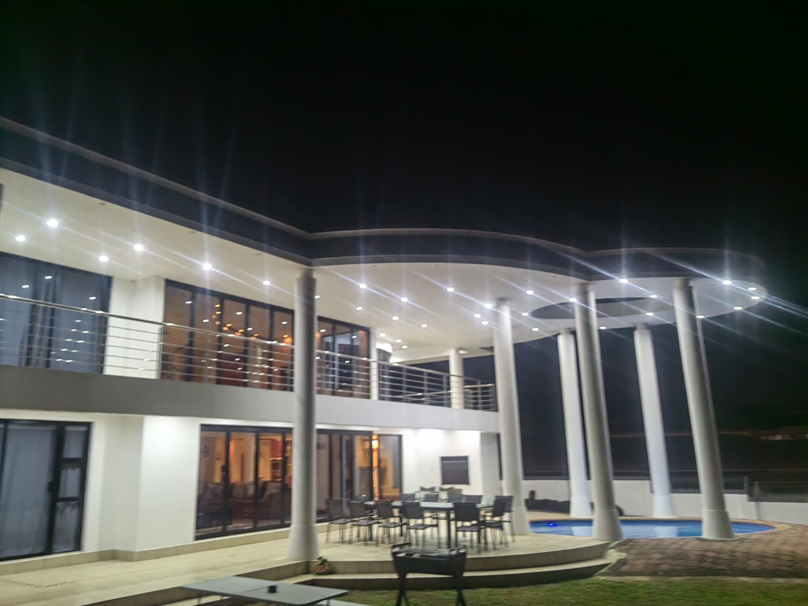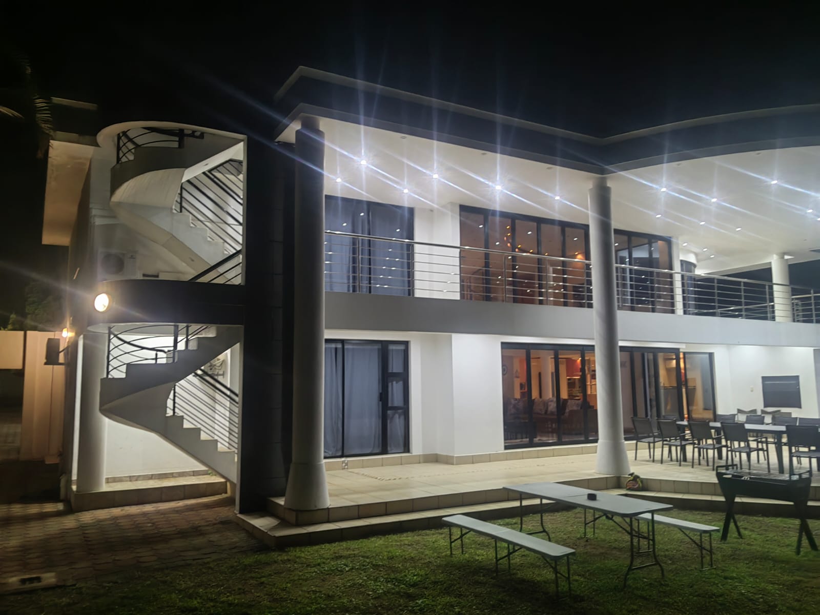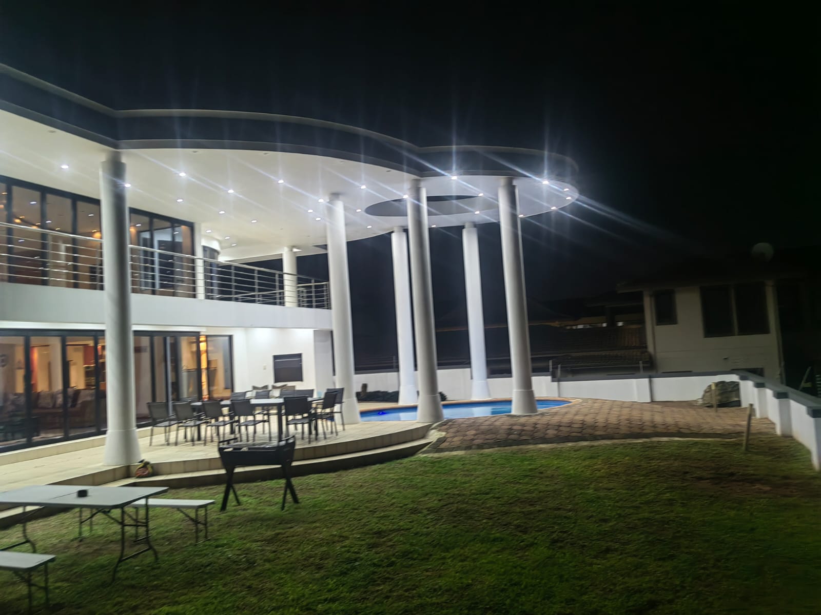 This beautiful Free standing 7 bedroom Home in Umhlanga Ridge is fully furnished with well equipped Two Modern kitchen. It’s located right in the heart of Umhlanga Ridge ( Durban) in Izinga Estate. 3 min away from Gateway mall , 5 min away from Ocean Mall and 5 min away from Umhlanga Light house or Beach.. Come enjoy like king and queen in the Palace. Beautiful ocean view. Enjoy your stay like a home away from home at the Palace in Izinga Estate