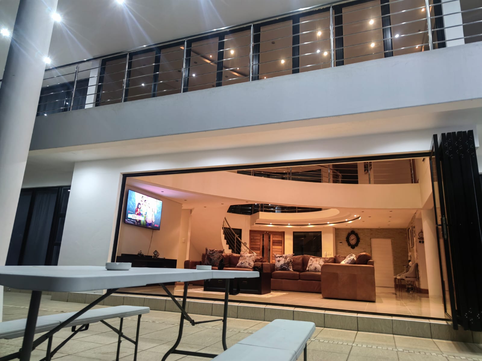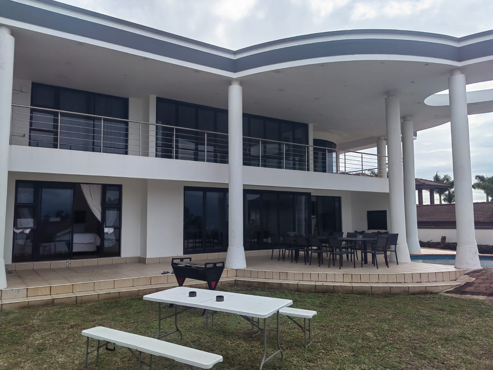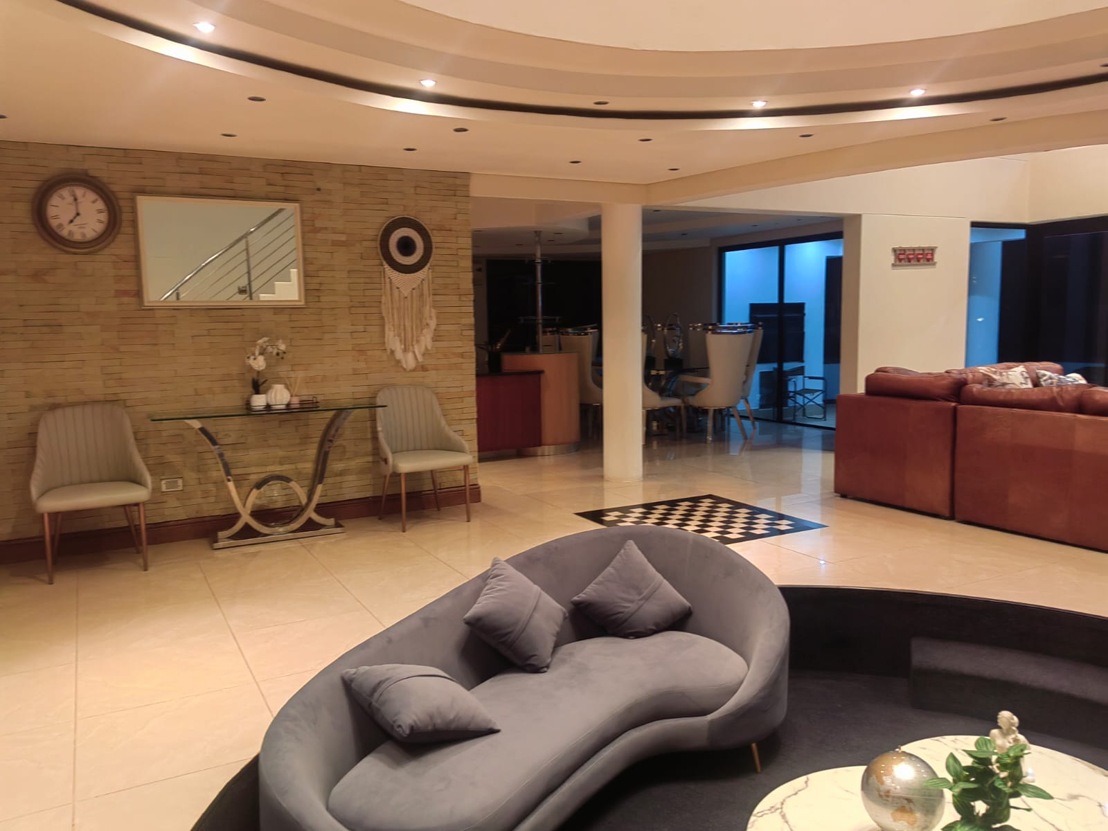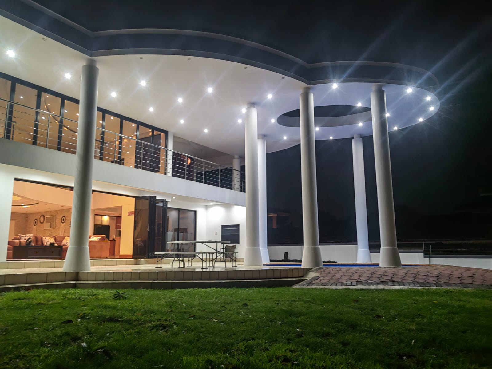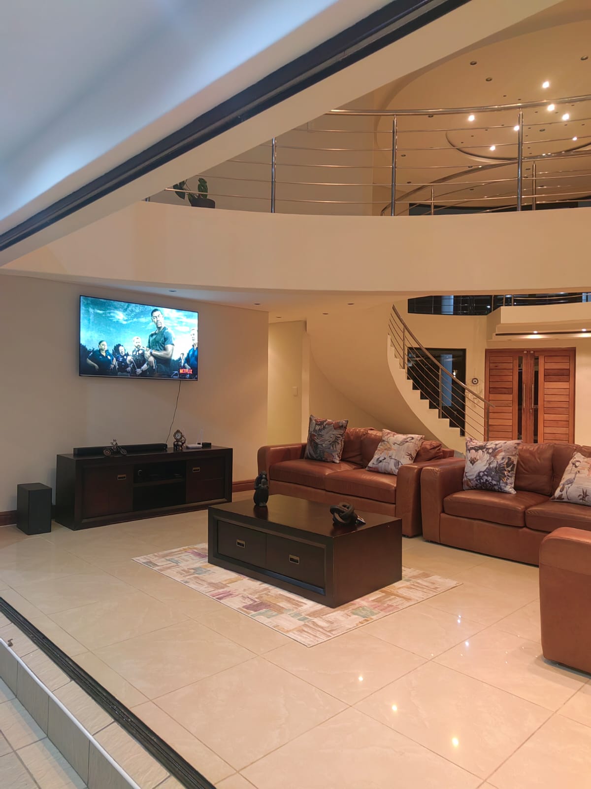 This beautiful Free standing 7 bedroom Home in Umhlanga Ridge is fully furnished with well equipped Two Modern kitchen. It’s located right in the heart of Umhlanga Ridge ( Durban) in Izinga Estate. 3 min away from Gateway mall , 5 min away from Ocean Mall and 5 min away from Umhlanga Light house or Beach.. Come enjoy like king and queen in the Palace. Beautiful ocean view. Enjoy your stay like a home away from home at the Palace in Izinga Estate